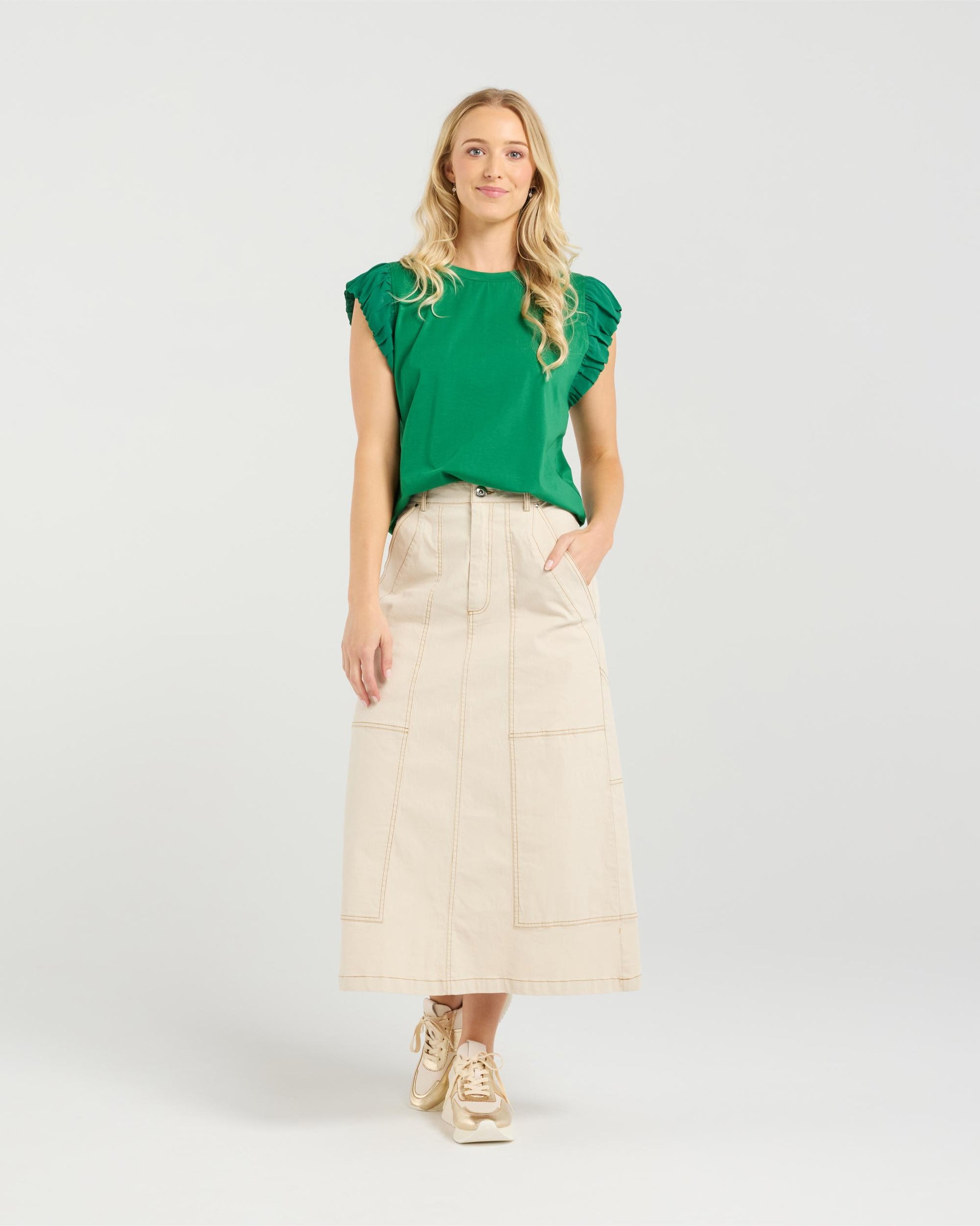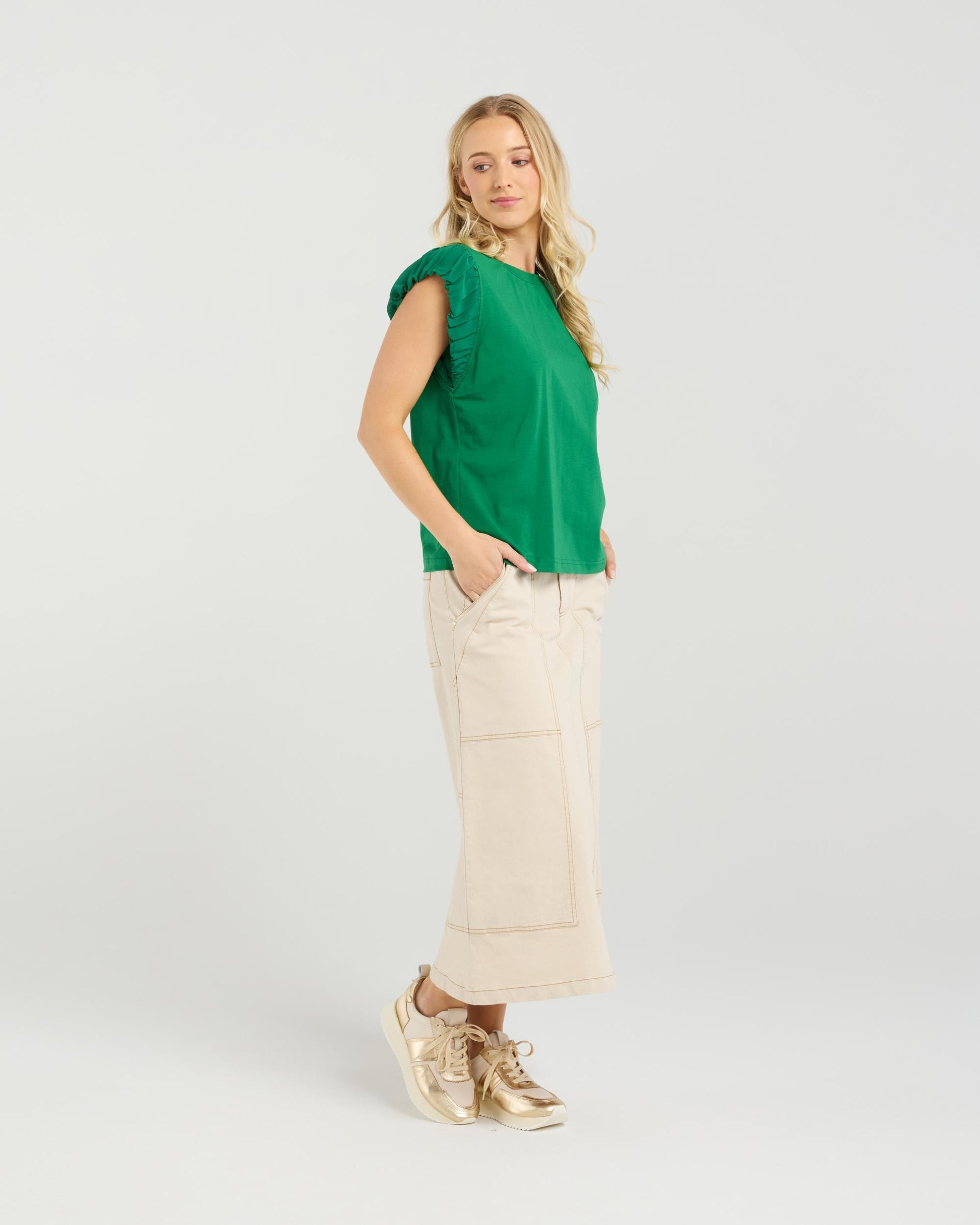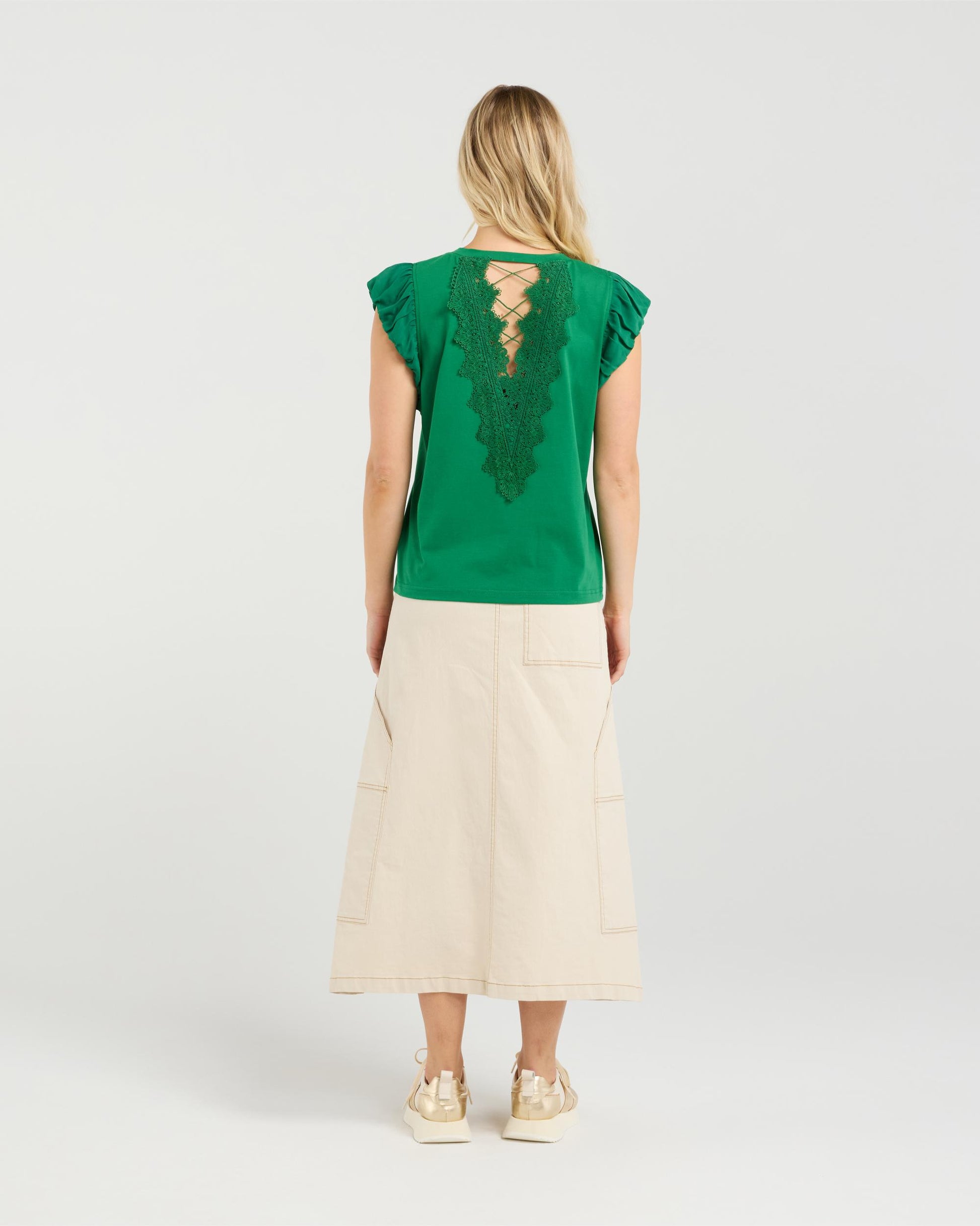 This elevated tee redefines everyday ease with a touch of unexpected elegance. Cut in a refined silhouette from a soft, premium cotton blend, it features a striking lace panel at the centre back—adding a layer of delicate texture and feminine contrast. The clean front keeps the look understated, while the intricate lace detail offers a moment of surprise and sophistication from behind. Effortless from every angle.