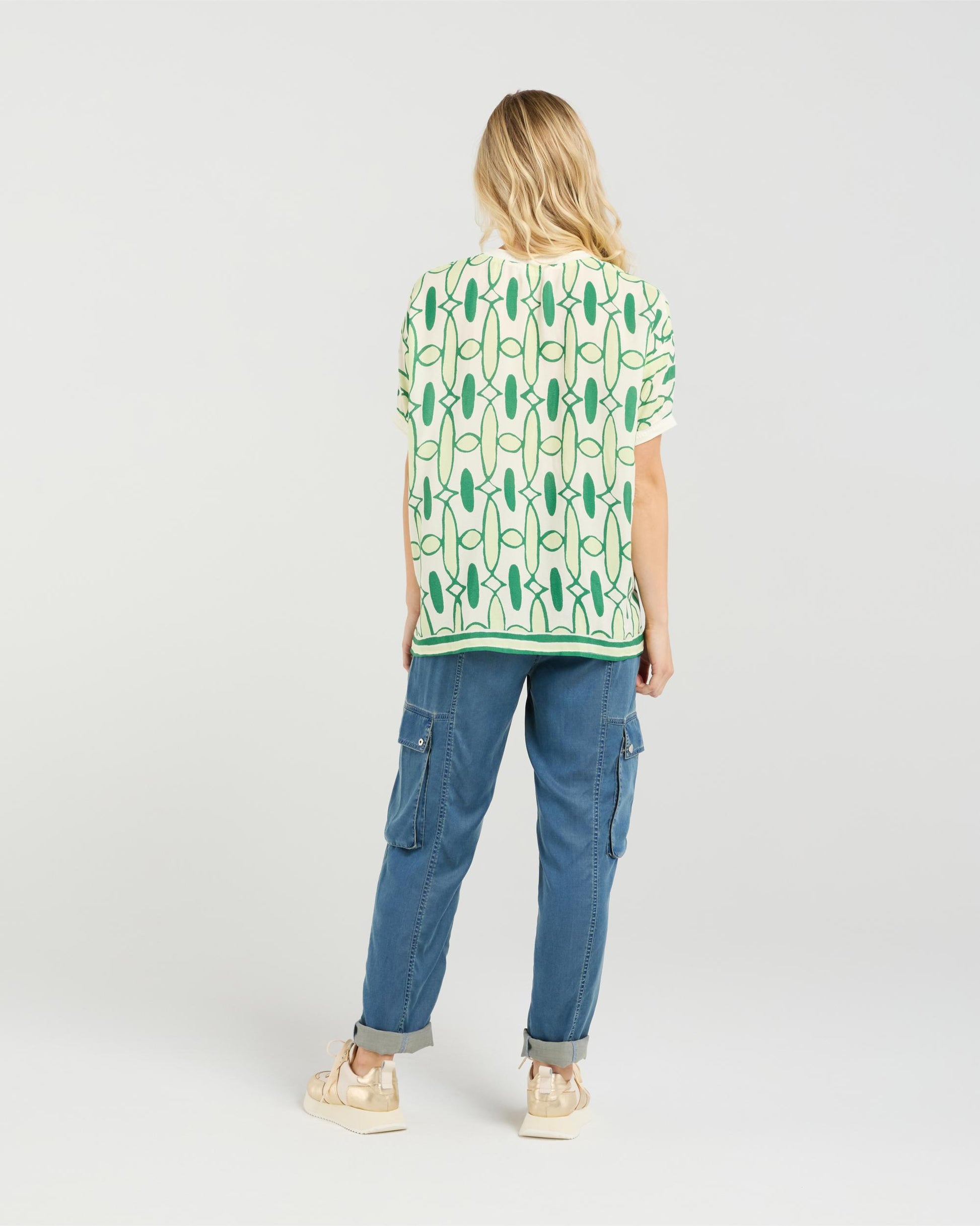 Check out our gorgeous Painted Grove print t-shirt style top. With its gorgeous print and striped knit trim, it is the perfect blend of style and comfort for your everyday fashion needs. It pairs back perfectly with your fav denim, pants or shorts for cute casual summer style.