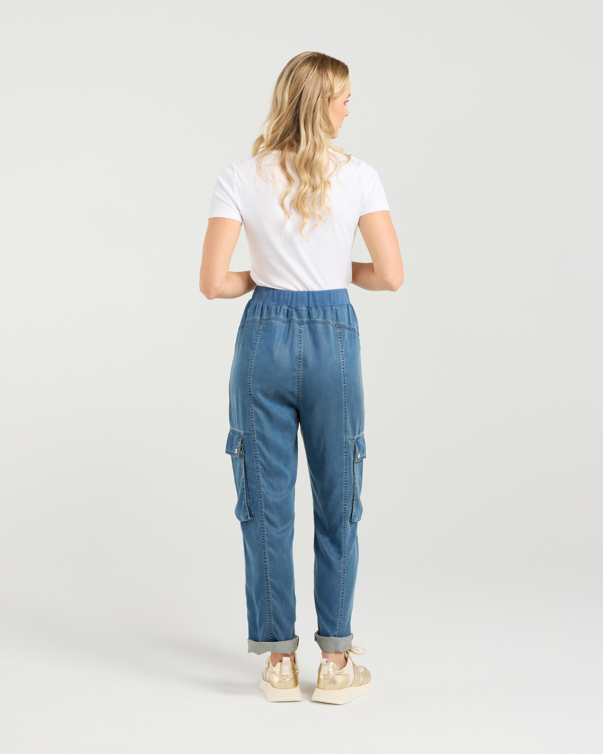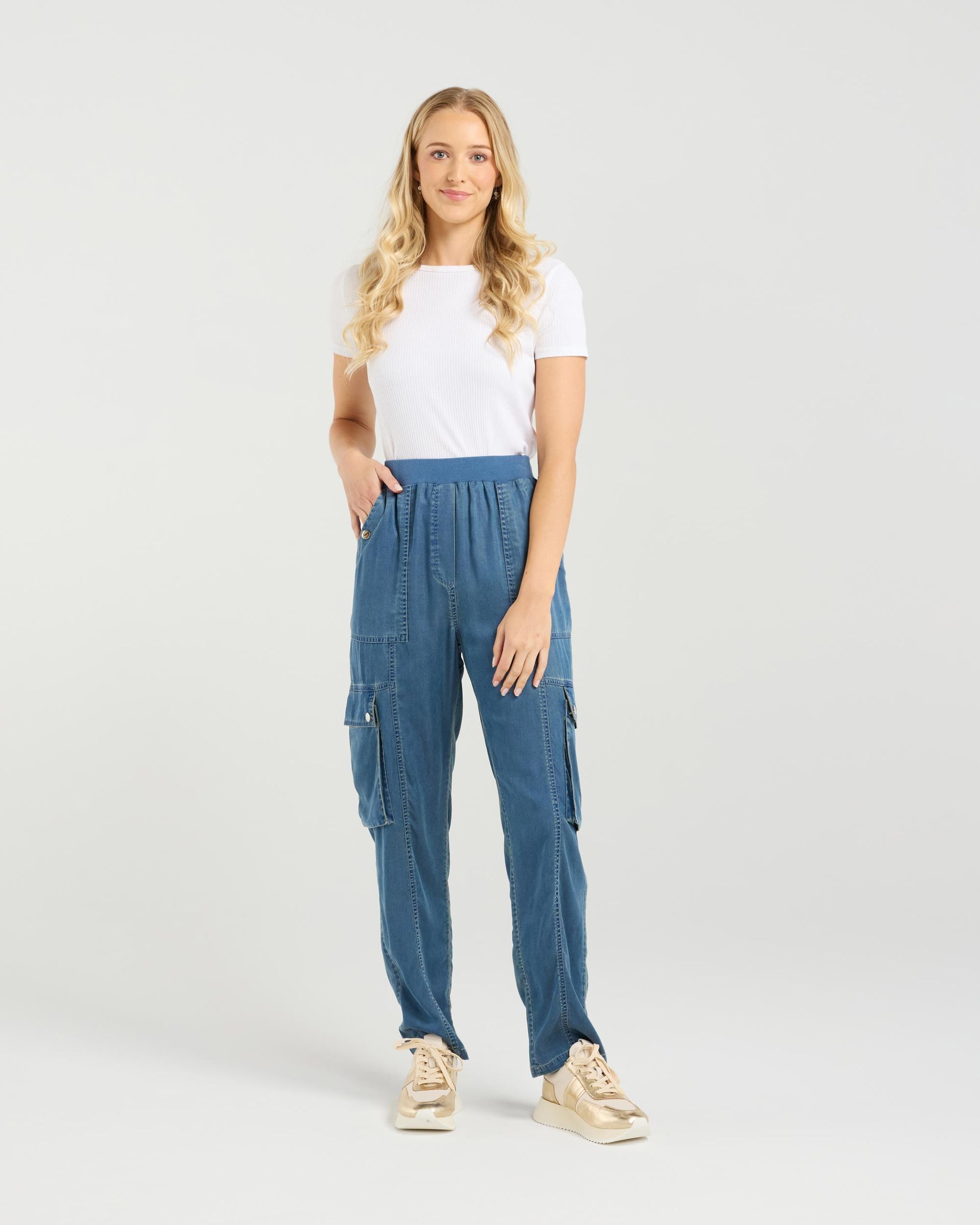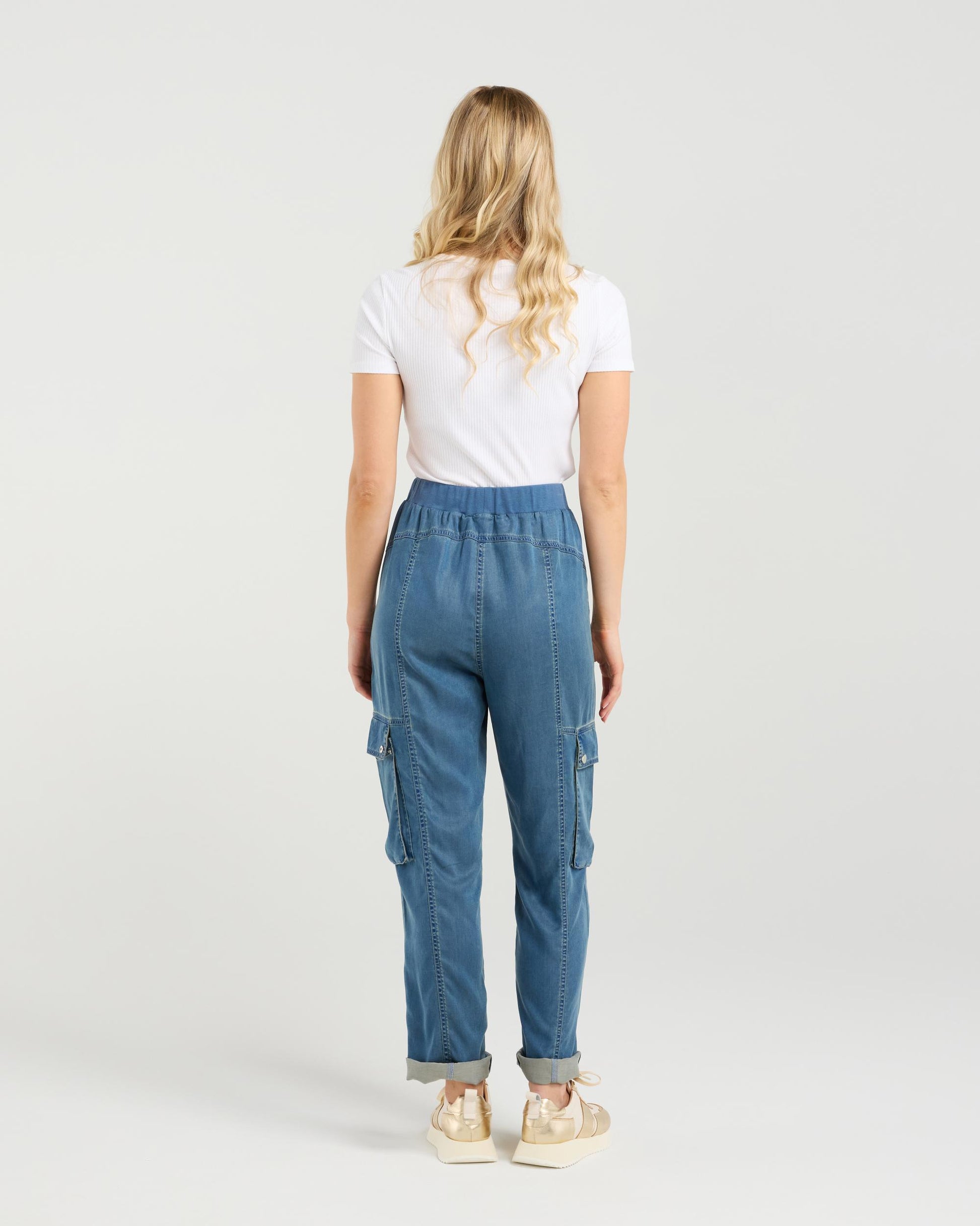 With a nod to a the traditions of the cargo pant, the Carter Cargo Pant can truly be dressed up or down. Featuring the utility pockets and hardware of the cargo style and a higher cut waist line for a flattering fit, these pants are sure to be on high repeat. The relaxed tapered leg line is perfect for wearing with dressy shoes, or pair back with sneakers for a modern look.