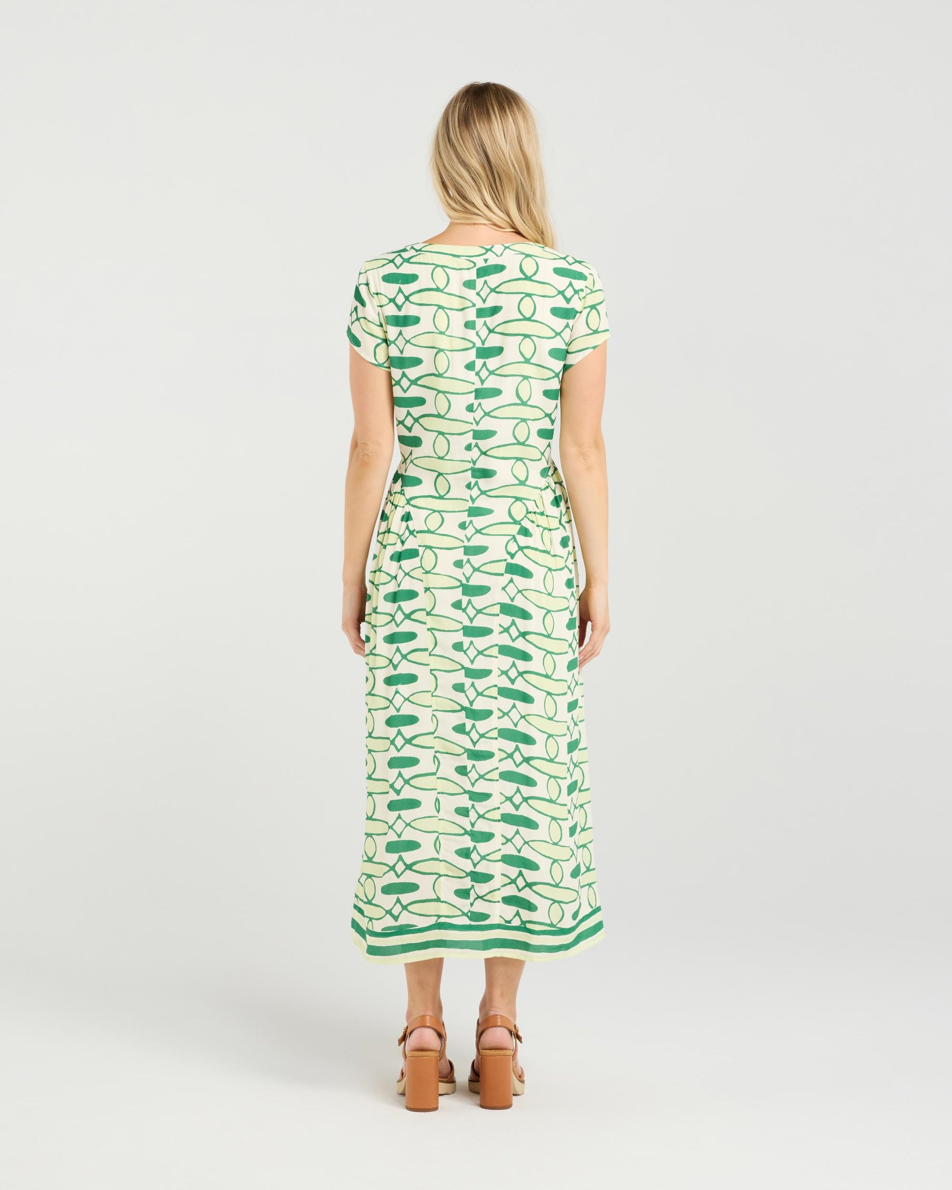 This shirt dress effortlessly blends classic tailoring with feminine flair. Featuring a cap sleeve and a button-down front that extends to the waist, it offers a polished look with a relaxed fit. The curved, gathered waist detail cinches the silhouette, creating a flattering shape that transitions seamlessly from day to night.