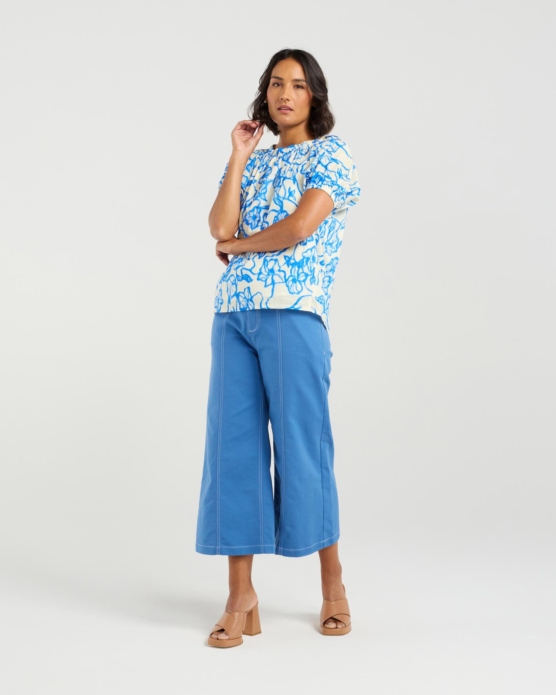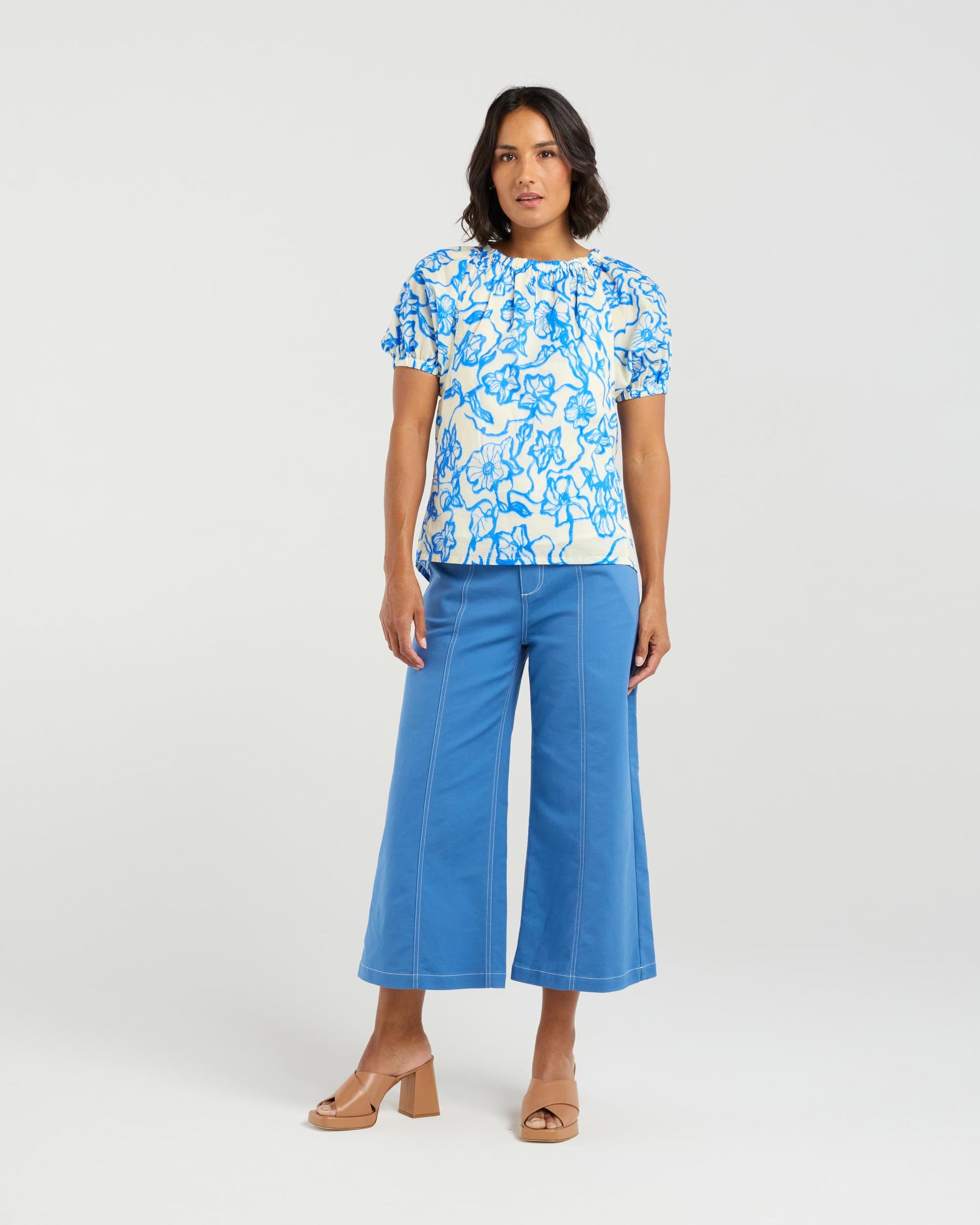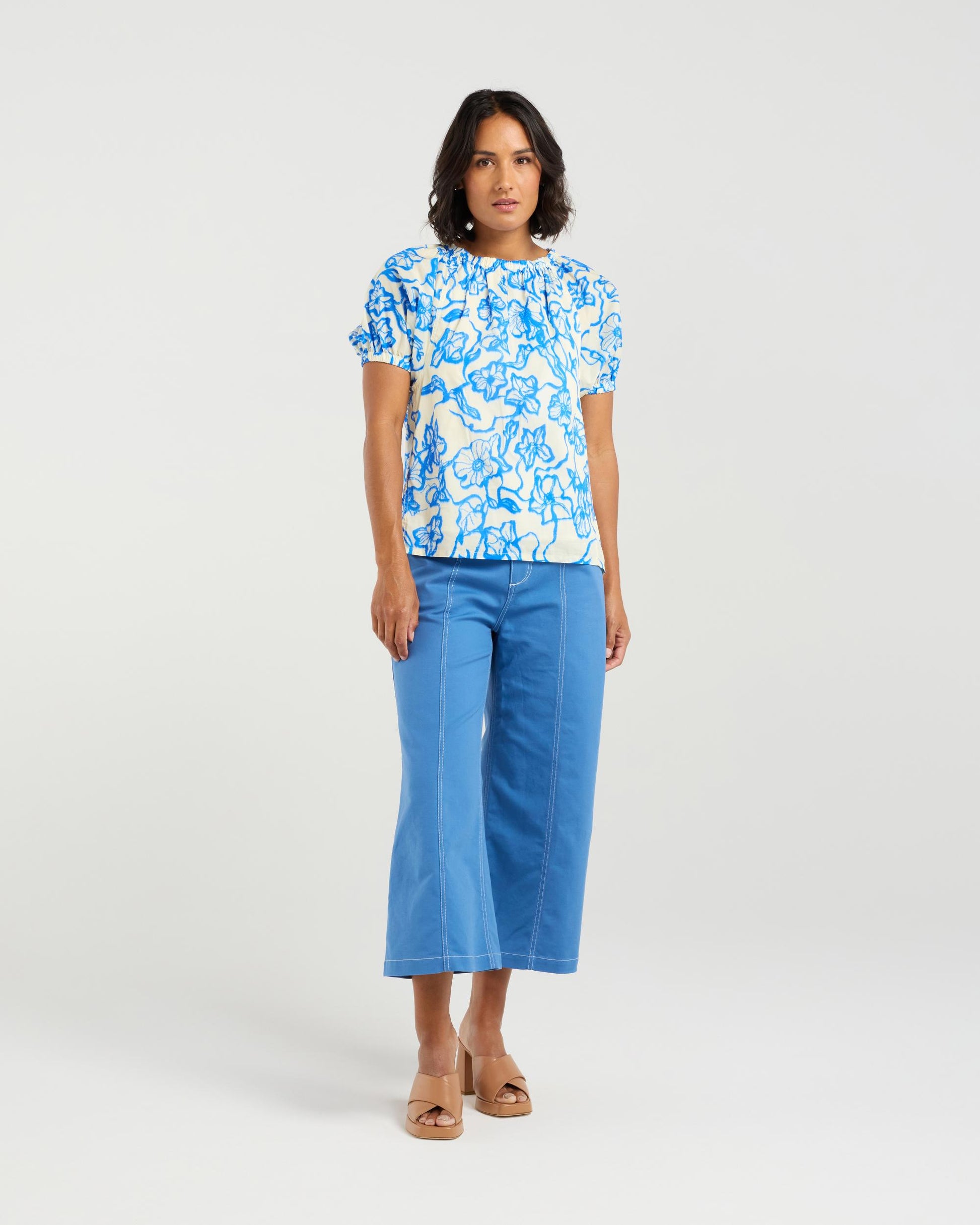With an elevated tee vibe, the Kyla top featuring an elasticated cuff, gathered neck detail and beautiful cotton fabrication is the perfect throw on piece. Pair with Maya Pant for a fresh spring look.