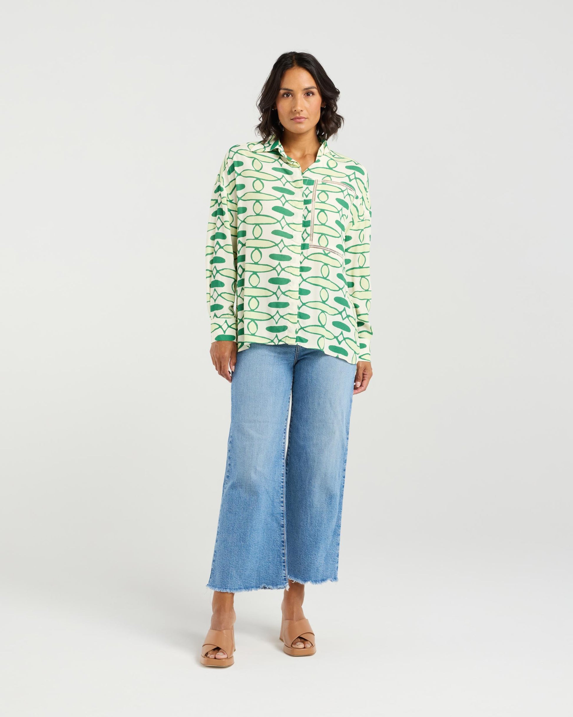 This oversized boyfriend-style shirt in chiffon exudes effortless, laid-back sophistication. The loose, relaxed fit is designed for comfort, with dropped shoulders and a longer silhouette that drapes beautifully. Delicate ladder lace detailing adds a subtle yet striking contrast to the otherwise simple design. Whether paired with jeans for a casual day look or dressed up with a skirt for a more refined style, this shirt is a must have for any wardrobe.